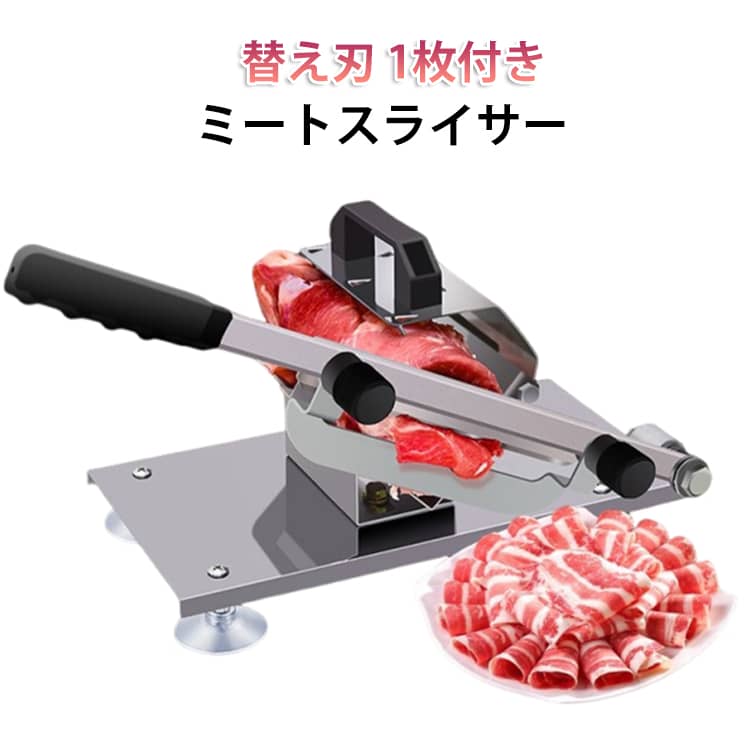 替え刃 1枚付き ミートスライサー 厚さ調節可能 家庭用 業務用 しゃぶしゃぶ 生ハムスライサー 吸盤付き 野菜切り 肉スライサー 手動式