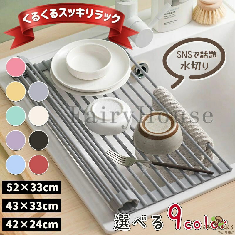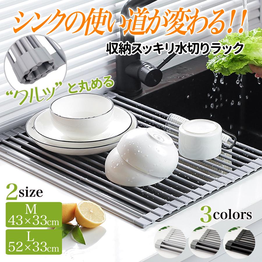 シンク周り がスッキリ!場所を取らない 水切りラック ! おしゃれ に 丸めて コンパクト に 収納 できる♪ 折り畳み 水切りカゴ くるくる たためる 収納