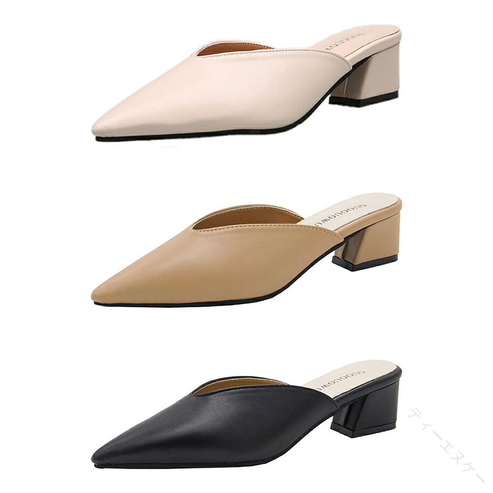 ミュール サンダル Vカット 5 センチ ヒール ローヒール 歩きやすい 低反発 疲れない 痛くない 履きやすい ポインテッドトゥ 春夏 黒 ベージュ レディース ぺたんこ 大きい サイ サボサンダル