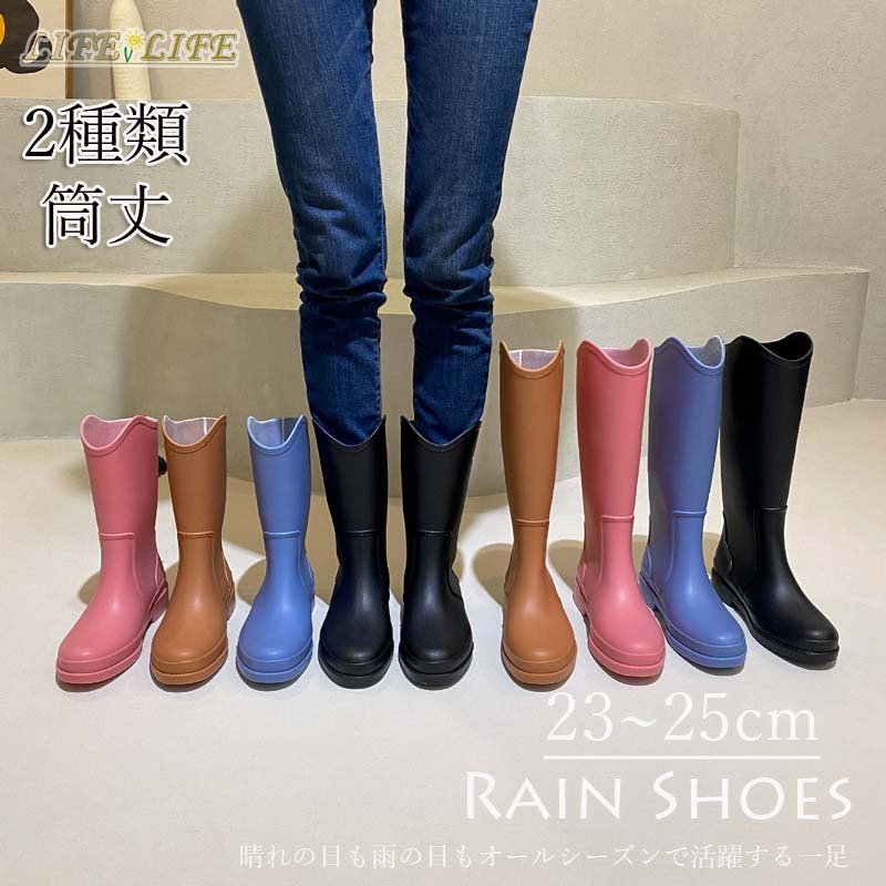 レインシューズ レディース 2種類筒丈レインブーツ ロング丈 長靴 雨靴 ファッション 防水 シューズ 作業靴 軽量 梅雨 台風対策 通勤 通学 アウトドア おしゃれ ベージュ カーキ ブラッ ピンク