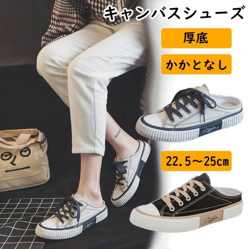 キャンバスシューズ かかとなし スニーカーレディース 疲れない サンダル 厚底 スリッポン シューズ 軽量 歩きやすい スリッパ キャ 靴