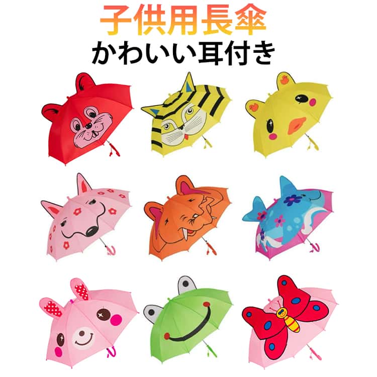 傘 子供用 長傘 耳付き かわいい 子ども 子供 男の子 女の子 雨傘 ジャンプ傘 可愛い キッズ 小学生 幼稚園 通園 通学 雨具 猫 鮫 蝶々 パンダ カエル ユニコーン クマ アニマル ウサギ