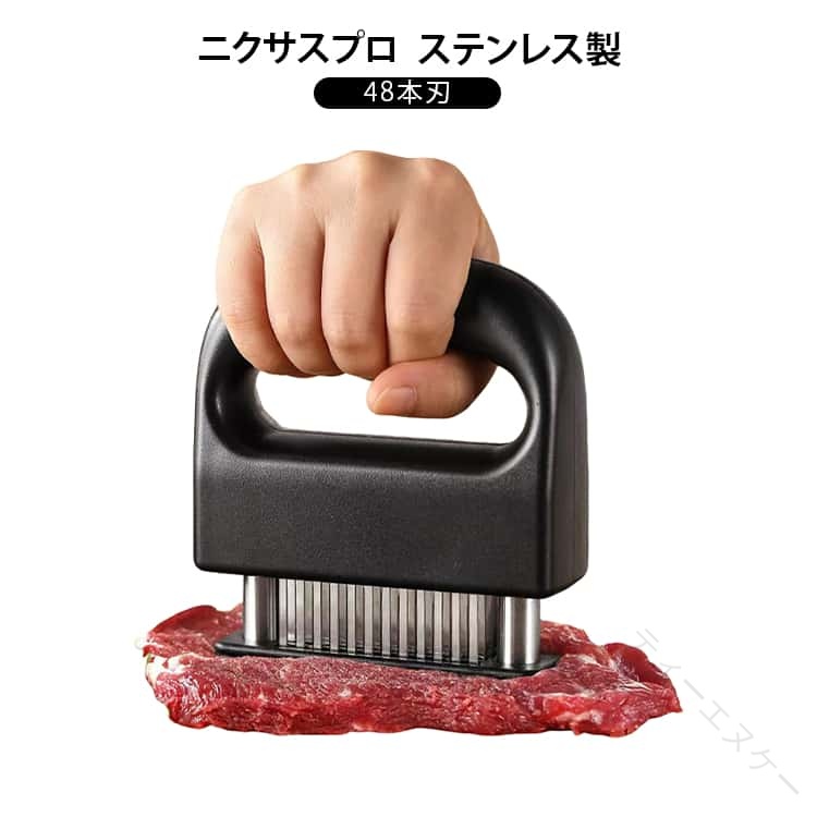ニクサスプロ 48刃 ミートテンダライザー 肉筋切り器 ステンレス製 ジャカード 肉たたき 肉叩き 肉刺し器 肉の筋切り器 肉刺し お肉を柔らかく キッチンツール 調理器具
