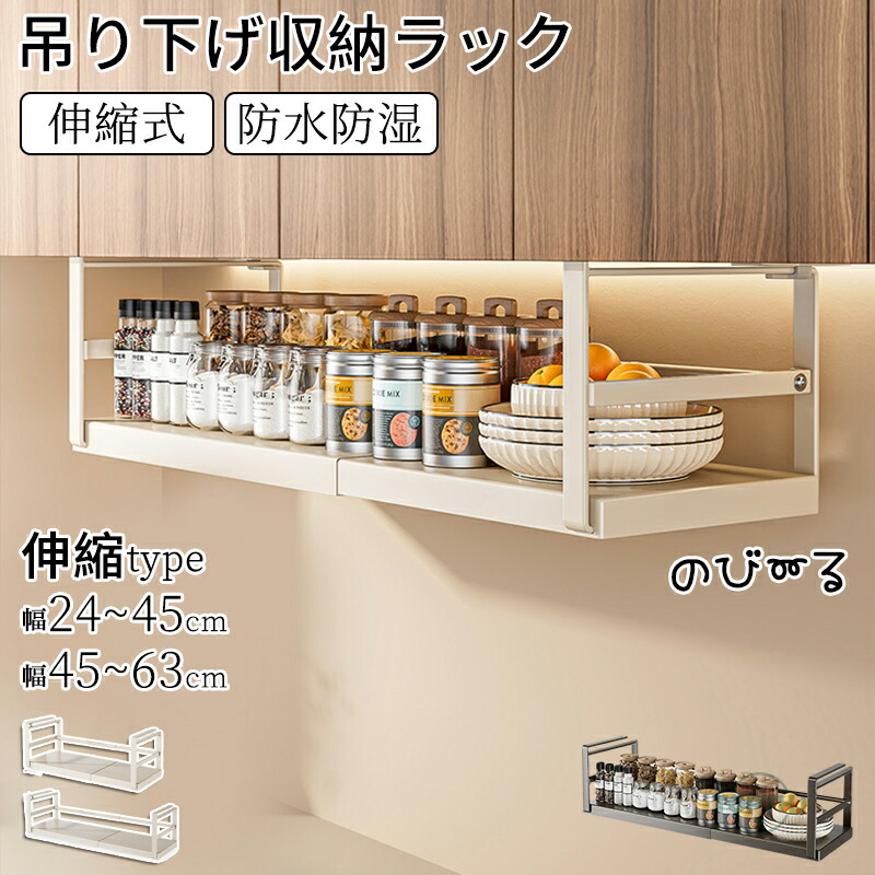 吊り戸棚下収納ラック 伸縮ワイド 戸棚下 ラック キッチン収納 吊り下げ棚 省スペース ホワイト ブラック 差し込み 洗面所 クローゼット吊り下げ式収納 キッチンラック つり戸棚ストッカー