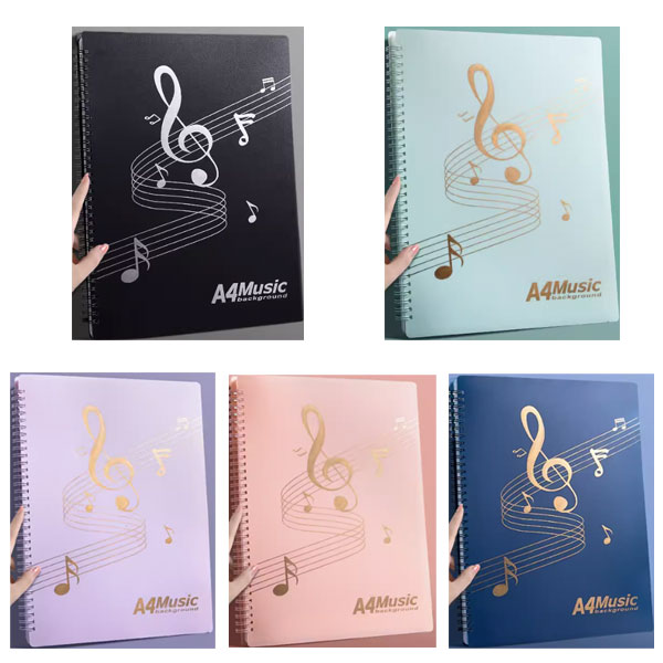 楽譜入れファイル 書き込み ブラック グリーン パープル ピンク ブルー 40枚 60枚 80枚 書き込みできる A4 中学生 高校生 バンドファイ 楽譜用ファイル