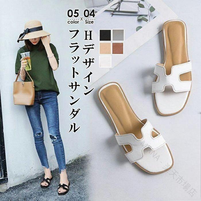 H デザイン サンダル フェミニン カジュアル 高見え シンプル おしゃれ お洒落 ぺたんこ つっかけ レディース 楽ちん