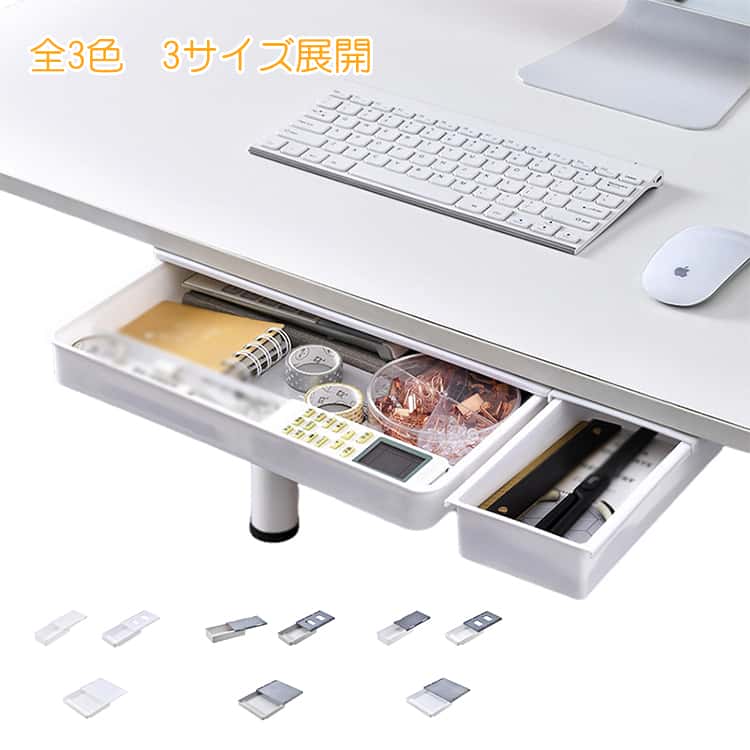 全3色 3サイズ展開 机下収納 引き出し デスク下引き出し 後付け引き出し 取り付け式 小物整理 文房具収納 隠し収納 スリム収納 デスク整理