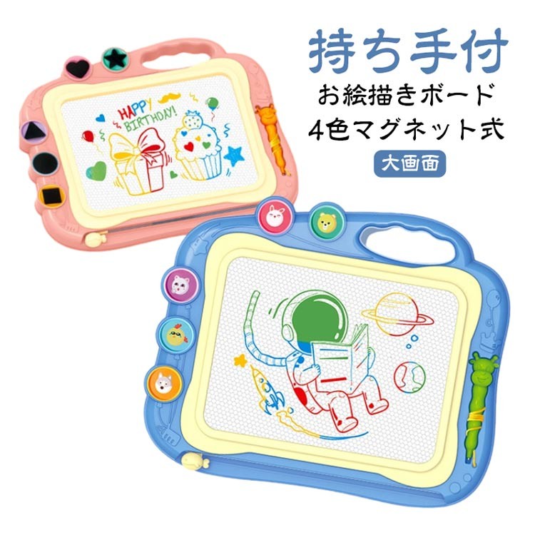 お絵描きボード 大画面 マグネット 知育玩具 繰り返し描いて消せる 4色ペン付き 子供用 プレゼント 持ち手付き