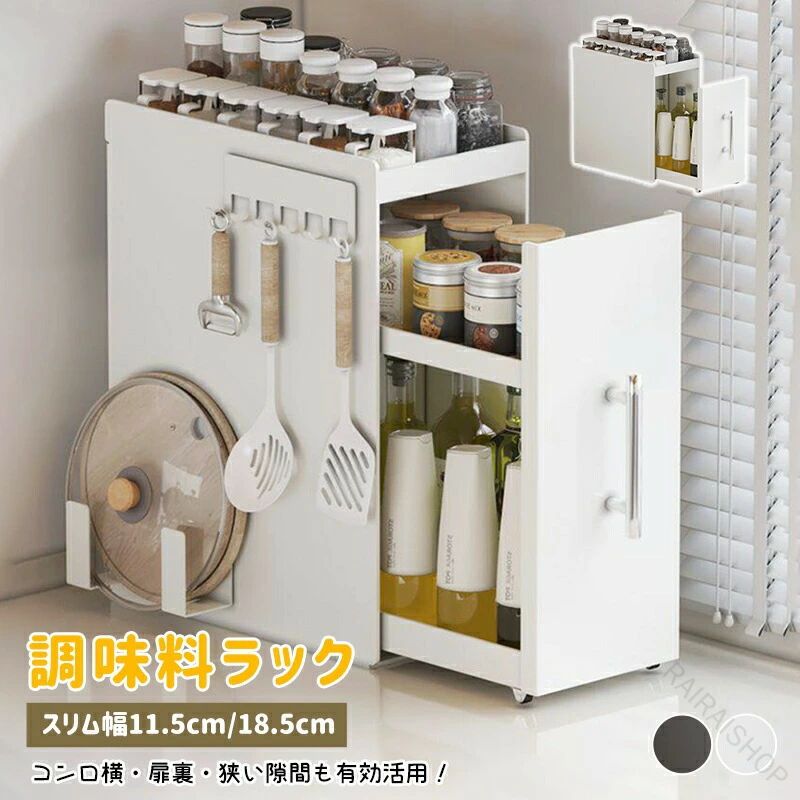 調味料ラック 2段 3段 引き出し付き スリム幅11.5cm 18.5cm 多段可動棚 キャスター付き スチール製 キッチン収納 調味料 油 省スペース