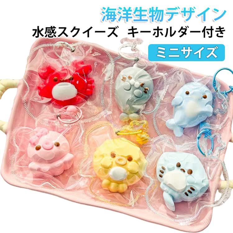 水感スクイーズ キーホルダー 海洋生物 カニ タコ イルカ スクイーズ 水感 低反発 ぷにぷに ふわとろ 袋のまま ふわふわ 柔らか プルプル 小さめ ミニ 高弾力 握る スト 粘着