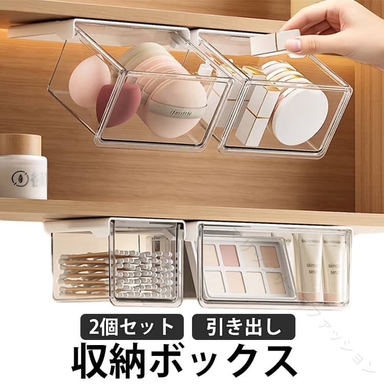 収納 ボックス 2 個 セット 簡単 取付 引き出し 式 透明 シンプル 後付け 穴あけ 不要 防水 小物入れ デスク 下収納 机 洗面台 バスルーム オフィス 洗面所