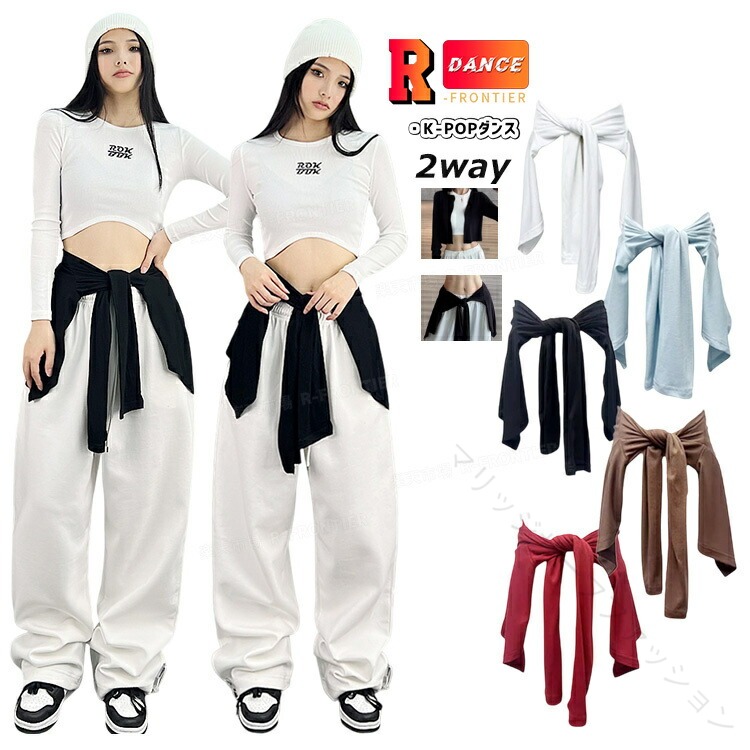 ダンス 衣装 ショート カーディガン 2WAY 着用 ジャズダンス 女性 ヒップホップ スタイル 腰巻き アウター スポーツ ウエスト バッグ レディース きれいめ カーゴ ストリート