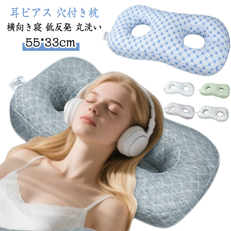 耳まくら 穴あき枕 耳痛 イヤホン ヘッドホン 枕 低反発枕 耳にやさしい まくら 横向き寝用 耳穴付き枕 耳ピアス枕 ピロー