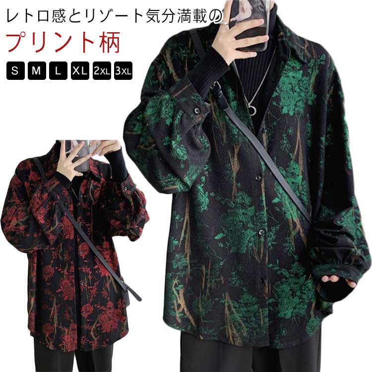 ゆったり カジュアルシャツ 地雷系 レトロ 花柄 開襟シャツ 南国風 長袖シャツ ブラウス 前開き 総柄 リゾートウェア 旅行 メンズアロハシャツ モード系 黒 花柄シャツ 普 韓国系