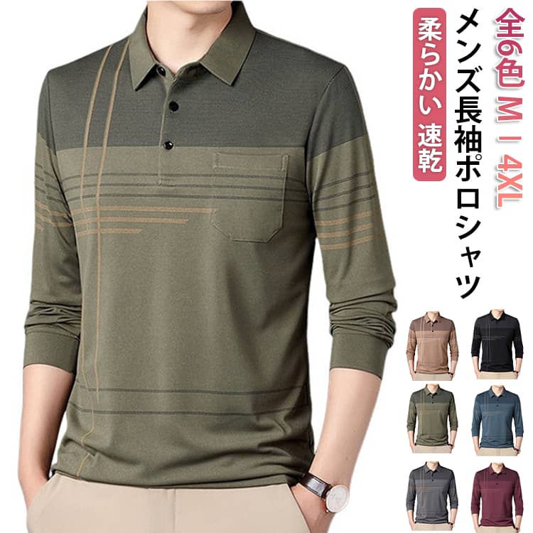 シャツ ゆったり 長袖ポロシャツ 仕事着 スポーツ 動きやすい 高齢者 敬老の日 誕生日 喜寿 米寿 傘寿 50代 60代 70代 全5色 2 3 4 メンズファッション