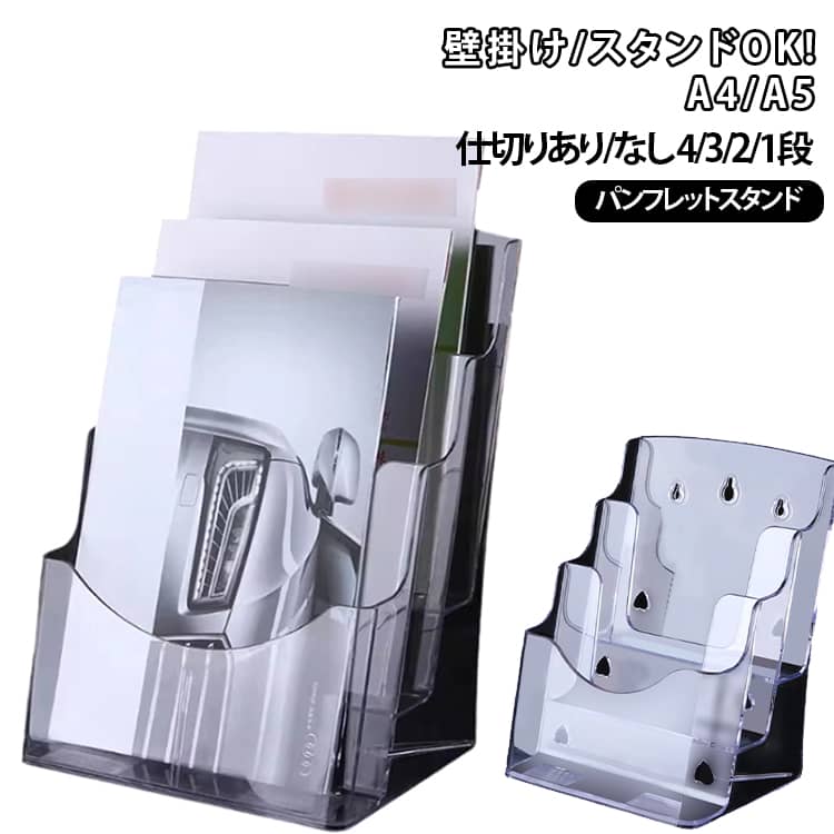おしゃれ 2段 A4 A5 4段 3段 アクリル 書類ケース 本立 仕切り 透明 カタログ スタンド 1段 ラック チラシスタンド ケース 卓上 本棚 壁掛け 収納 パンフレットラック 立て