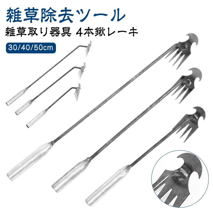 草取り道具 4歯デュアルパーパス付き雑草抜き ハンド雑草除去ツール?雑草取り器具 4本鍬レーキ コンパクト耕作鍬 農機具